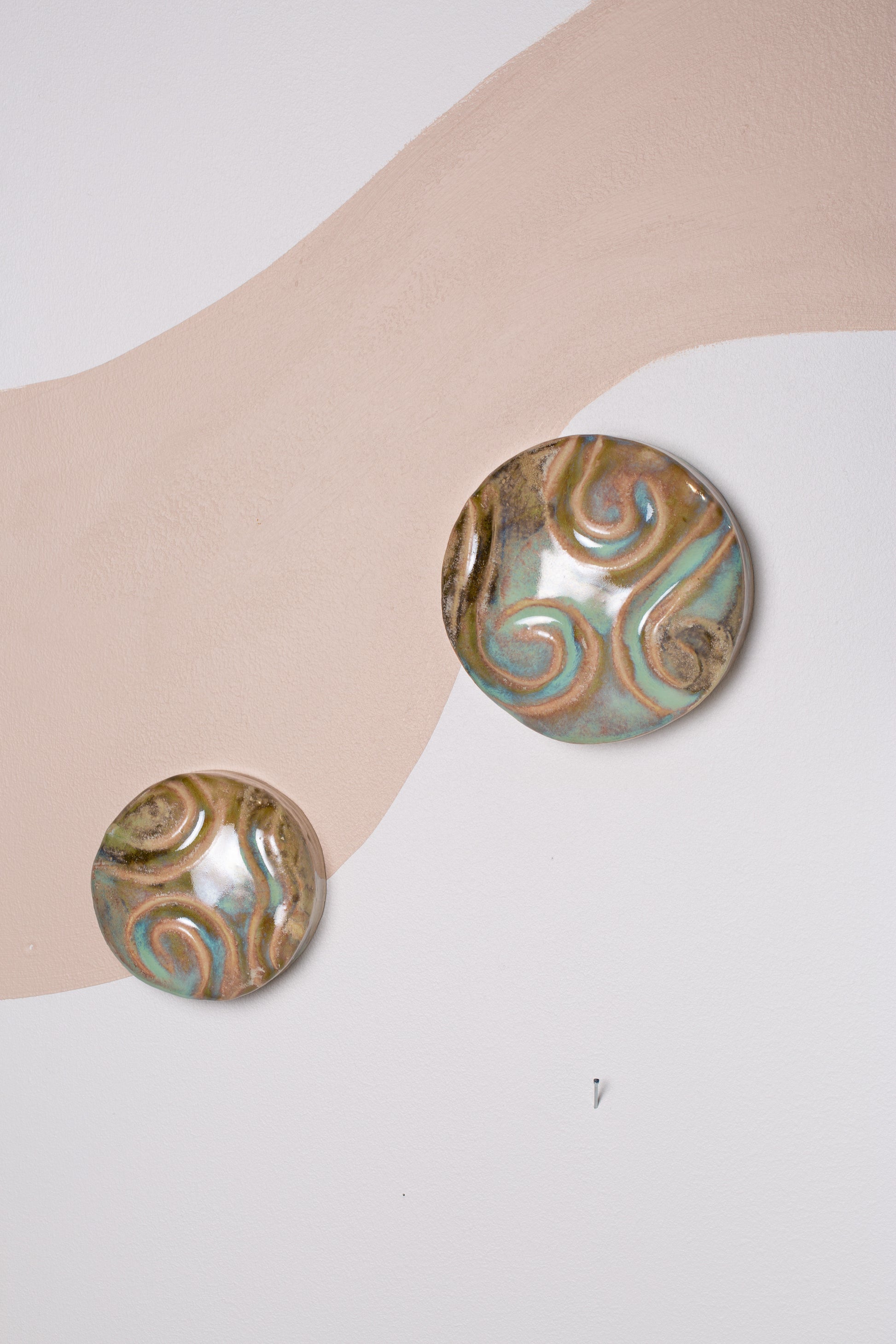 Mine unika vægophæng er formet i bløde, naturlige linjer og glaseret i et bredt udvalg af farver. Hvert ophæng er helt unikt og skabt i hånden, så du får et stykke kunst, der kun findes i én udgave.