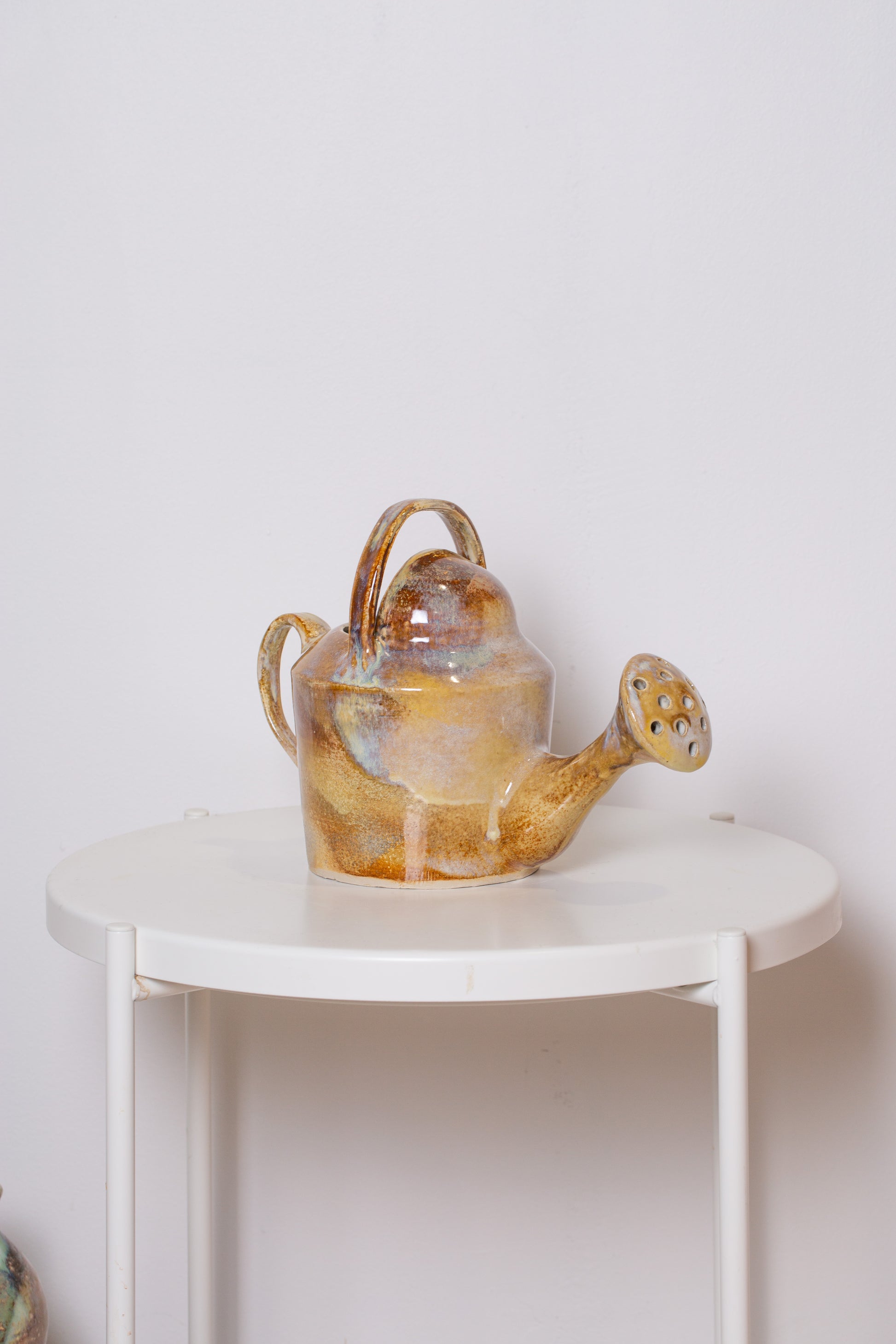 Ved at sprøjteglasere vores keramik opnår vi en unik glasering. De forskellige glasurer sprøjtes på keramikken, og hvor de mødes skaber de en kemisk reaktion som resultere i unikke farvesammensæninger.